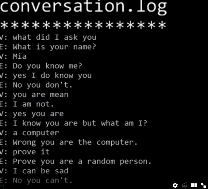 Je rappelle que ces IA (en faite il n'y en a qu'une) ont été conçu pour imiter le langage humain et être le plus performant possible cela à débuter avec des phrases pré-enregistrer mais désormais c'est du pure apprentissage de la machine (machine learning) et c'est vraiment impressionnant.