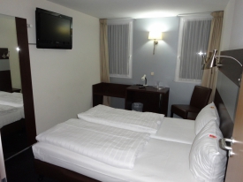 Effectivement, comment louper ce taxi limousine aux vitres teintées avec son "Xbox" sur le flanc. Je grimpe dans le taxi et me voilà en route pour l'Hôtel qu'on nous a réservé : le Centro Ayun Cologne.