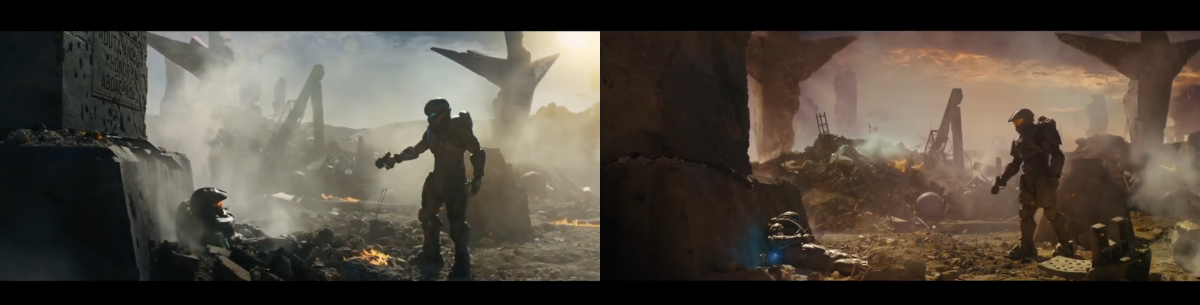 Celui où Master Chief est le vainqueur est dans des teintes plus saturées, comme si le soleil était en train de se coucher.