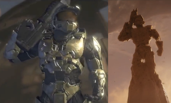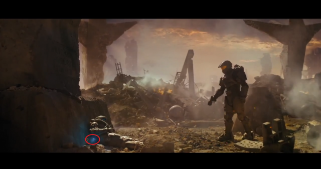 Là où la statue du Spartan 117 est entière dans le trailer de Locke, elle est sévèrement endommagée dans le trailer du Master Chief au niveau de l'arrière de la tête et du bras gauche, soit exactement là où le Major est blessé dans le trailer de Locke.