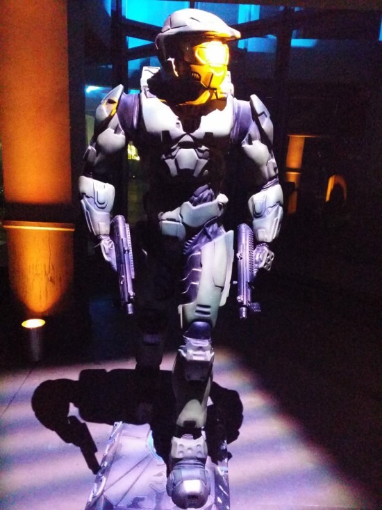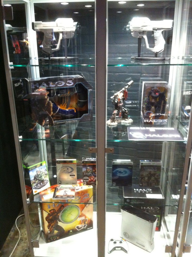 Une fois passée la stupéfaction causée par l’admiration des statuettes, armes ou manettes dont on ne soupçonnait même pas l’existence, il était temps d’aller poser ses petites mains sur le dernier né de la saga. Pour ce faire, un escalier vous emmenait un étage plus bas dans une large salle équipée de nombreux postes vous permettant de jouer aux trois premières missions de la campagne, sous l’œil attentif d’une magnifique statue du Master Chief façon Halo 2. Histoire de pouvoir profiter à fond de cette expérience, un bar était à votre libre disposition, vous offrant de quoi vous restaurer et vous rafraichir. Que demander de plus ?