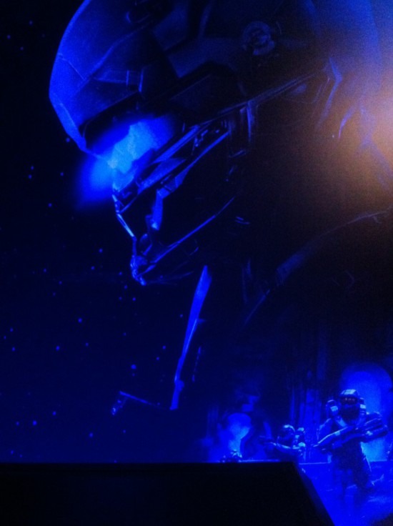Pour rester dans l’ambiance, une longue rampe entourée de hublots menant sur l’espace vous dirigeait vers un large espace que l’on pourrait qualifier d’anti-chambre vous permettant de vous immerger totalement dans l’univers de Halo.