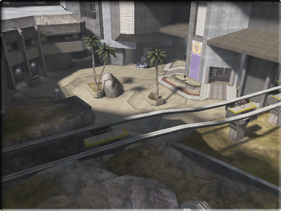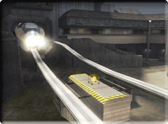 Sans aucun doute, l’élément clé de Terminal est le train-navette MagLev qui se déplace, rapide comme l’éclair, à travers la carte à des intervalles réguliers. Plus qu’un simple élément visuel, le « super train » a un réel impact sur le gameplay. Cependant, il semble toujours arriver au mauvais moment. Le « Duc du hasard » auquel se réfèrent Mike et Chris est une route étendue qui mène à la base offensive, autour du périmètre de la carte, à travers les rails et jusqu’à une cour, en face de la base défensive. C’est droit, rectiligne, et généralement la route la plus directe pour prendre le Warthog. Le problème est qu’en définitive, vous devez franchir ces rails et si vous ne faites pas attention, vous risquez de faire une rencontre malencontreuse avec ledit train. De tels moments sont fréquents, et créeront vos meilleurs souvenirs sur cette map.