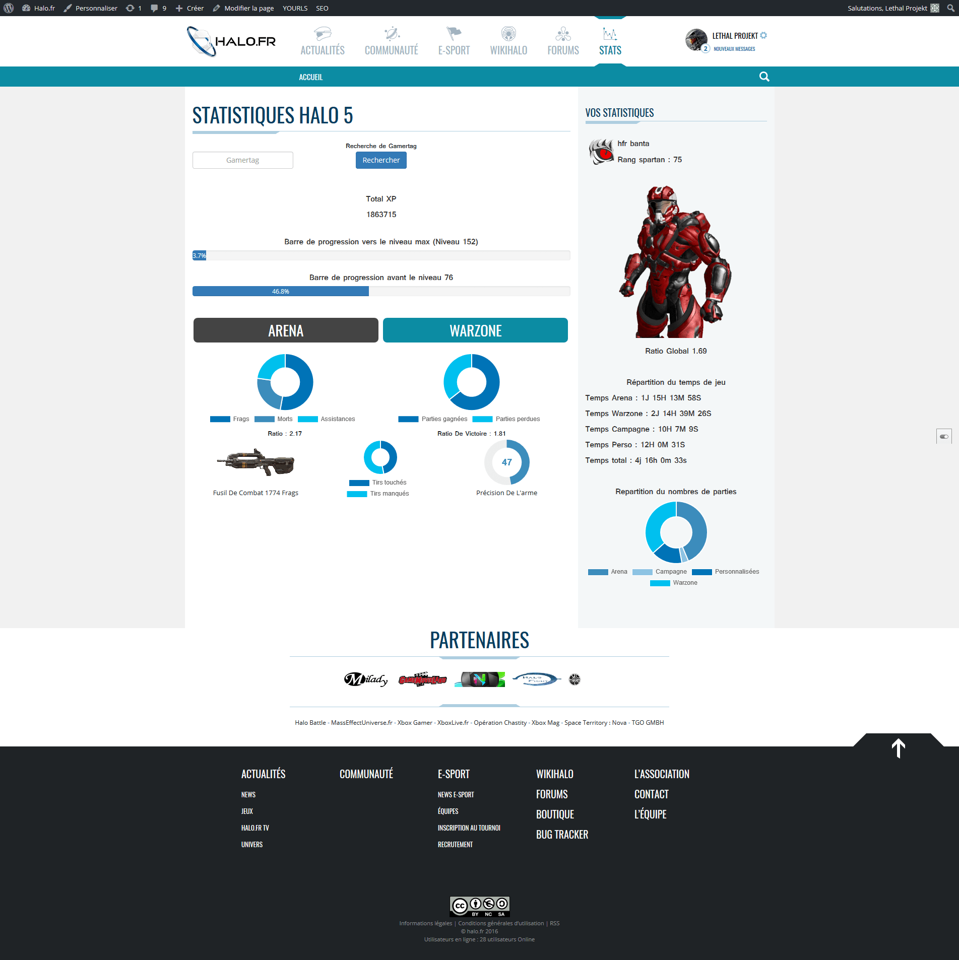 Depuis 1 mois et demi, à l’annonce de l’ouverture de l’API de Halo 5 : Guardians, nous avons pris la décision de développer Halo.fr Stats, un système de suivi de vos exploits en multijoueur. Ce projet a été mené par Banta et Ludofloria, épaulés par nos recrues non moins talentueuses Cha0s et Reconnois. Sans eux, cette fonctionnalité n’aurait jamais vu le jour et il vous faudrait encore partir en quête sur le web pour chercher vos statistiques détaillées.