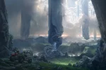 Ce qui est illustré sur cette image n’est pas tant le possible design des Warthogs, Pélicans ou structures humaines, mais plutôt l’aspect d’immensité de l’environnement : de grands espaces naturels parsemés de présence humaine. Cela laisse sous-entendre, comme ce qui avait été annoncé à demi-mot, que l’espace de jeu de Halo Infinite sera beaucoup plus vaste que ses prédécesseurs.