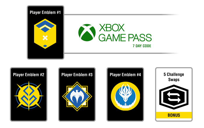 A l’instar de l’opération promotionnelle avec Mondelez, celle de Butterfinger offrira plusieurs paliers de récompenses en fonction du nombre de produits participants achetés : 4 emblèmes peuvent ainsi être obtenus, au même titre que 7 jours de Xbox Game Pass et 5 jetons de changement de défi. Ces fameux jetons confirment donc le retour du système de défis introduit dans Halo : Reach, poursuivi dans Halo 4 et réintroduit dans Halo Wars 2 ou plus récemment encore dans Halo : The Master Chief Collection.
