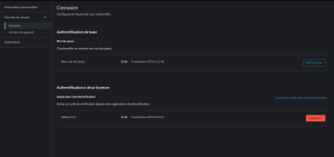 En plus d’une stabilité nettement améliorée, ce nouveau gestionnaire d’authentification vient avec de nombreux avantages pour nos utilisateurs, comme l’onglet « sécurité du compte » vous permettant de gérer l’ensemble de vos sessions actives, mais aussi d’activer la double authentification sur votre compte.
