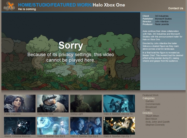 Page du site affichant le trailer « Halo 5 » supprimé